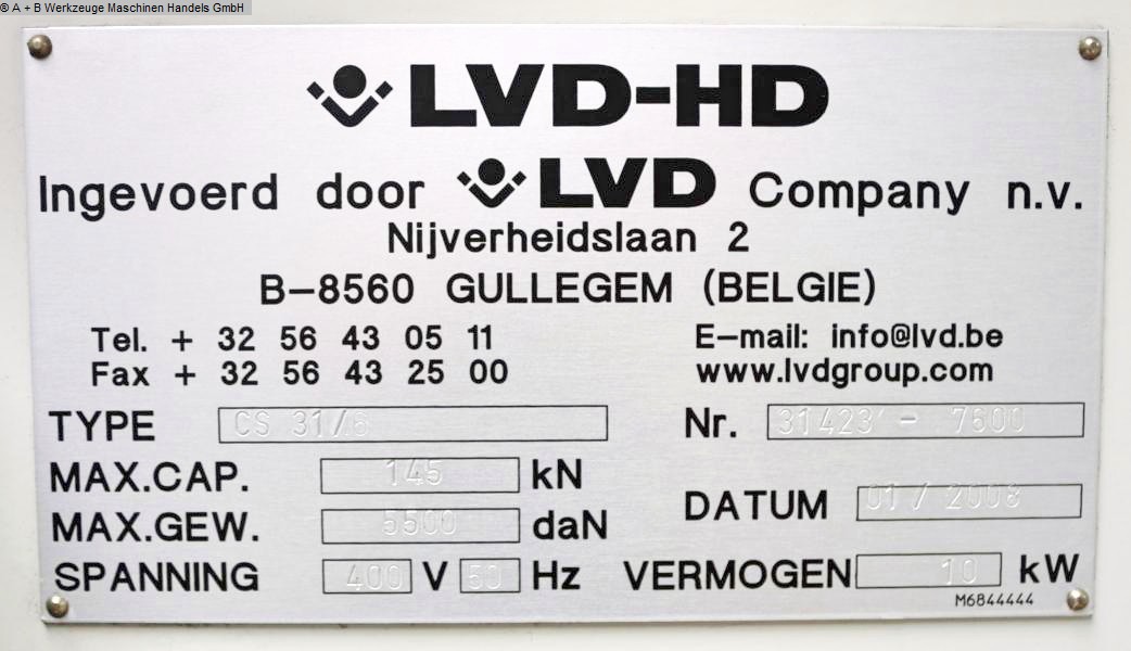 - LVD control panel centrally located on the front of the machine (left)